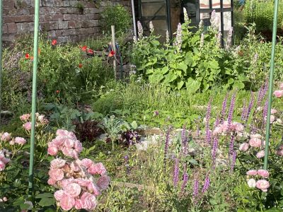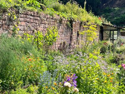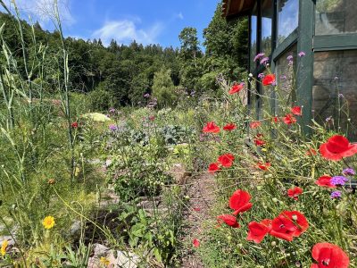 Wir pflegen die Gärten biologisch und nachhaltig. Mit Kräutern, Blumen und Mischkultur fördern wir Nützlinge und stärken die Biodiversität. Vom frühen Frühjahr bis in den späten Herbst blüht und summt es im Karlstal.